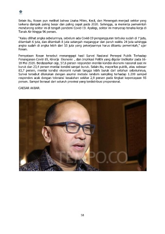 18 Mei 2020. Berdasarkan sigi, 57,6 persen responden menilai kondisi ekonomi nasional saat ini