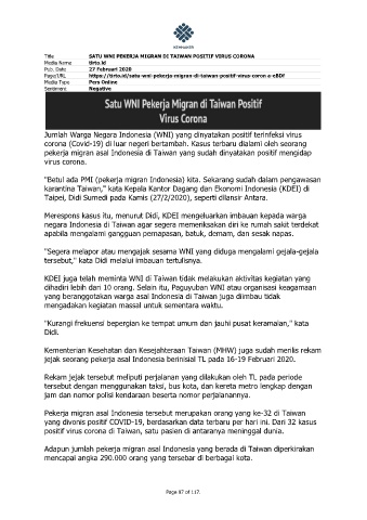 Title SATU WNI PEKERJA MIGRAN DI TAIWAN POSITIF VIRUS CORONA