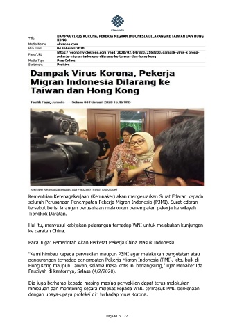 Title DAMPAK VIRUS KORONA, PEKERJA MIGRAN INDONESIA DILARANG KE TAIWAN DAN HONG