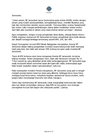 hasil yang baik, dan tidak ada temuan KPK tentang kerugian pada investasi BP