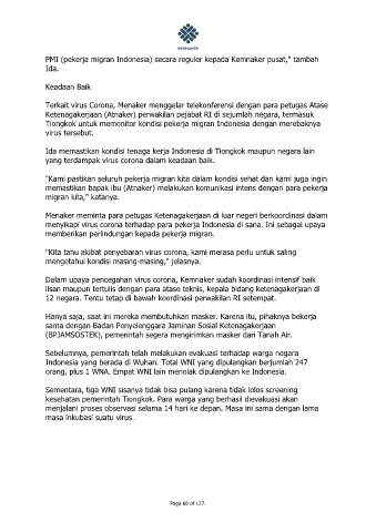 "Kami pastikan seluruh pekerja migran kita dalam kondisi sehat dan kami juga ingin