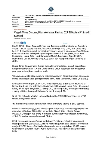 Title CEGAH VIRUS CORONA, DISNAKERTRANS PANTAU 529 TKA ASAL CHINA DI SUMSEL