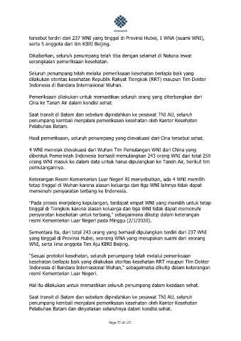 tersebut terdiri dari 237 WNI yang tinggal di Provinsi Hubei, 1 WNA (suami WNI),