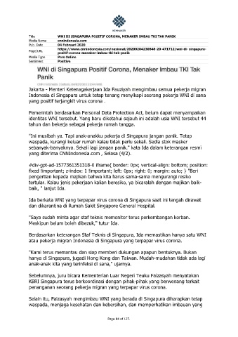 Title WNI DI SINGAPURA POSITIF CORONA, MENAKER IMBAU TKI TAK PANIK