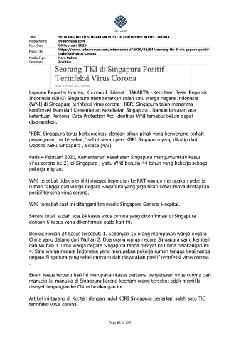 Title SEORANG TKI DI SINGAPURA POSITIF TERINFEKSI VIRUS CORONA