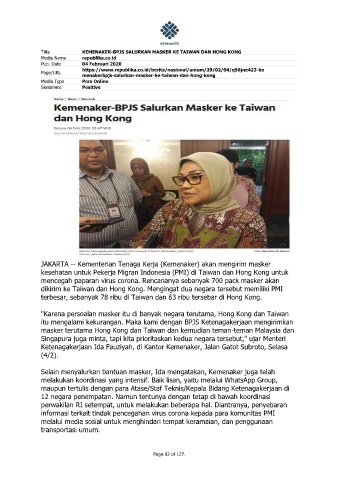 Title KEMENAKER-BPJS SALURKAN MASKER KE TAIWAN DAN HONG KONG