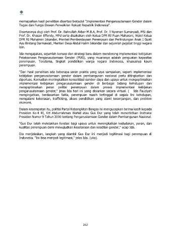 memaparkan hasil penelitian disertasi berjudul "Implementasi Pengarusutamaan Gender dalam