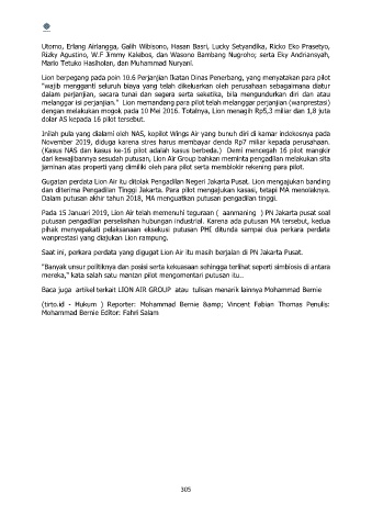 melanggar isi perjanjian." Lion memandang para pilot telah melanggar perjanjian (wanprestasi)
