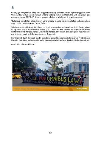 Sebelumnya, Front Rakyat Sulut Bergerak telah mengadakan aksi penolakan RUU Omnibus Law