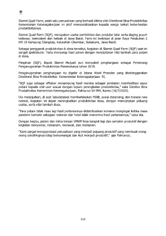 Slamet Quail Farm, salah satu perusahaan yang berhasil dibina oleh Direktorat Bina Produktivitas