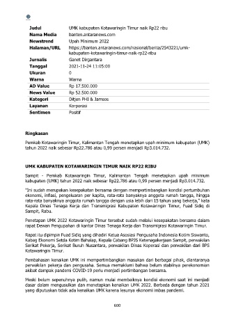 Judul UMK kabupaten Kotawaringin Timur naik Rp22 ribu