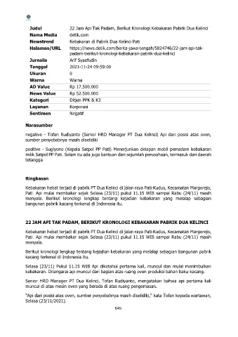 negative - Tofan Rudiyanto (Senior HRD Manager PT Dua Kelinci) Api dari posisi atas oven,