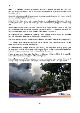 11.45 WIB Api mulai merembet dari ruang bagian oven ke ruang perkantoran pabrik. Sebab,