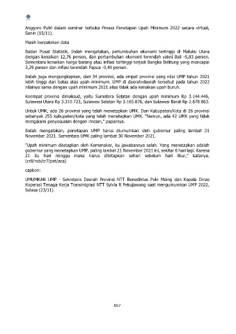 Indah juga mengungkapkan, dari 34 provinsi, ada empat provinsi yang nilai UMP tahun 2021