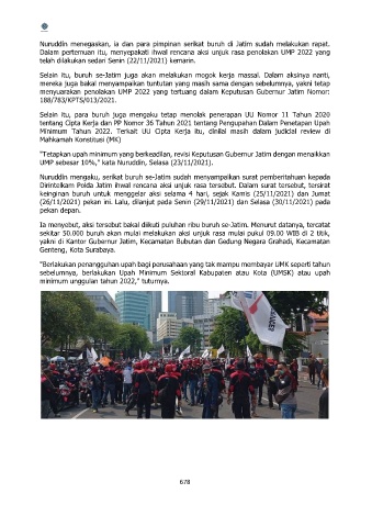 menyuarakan penolakan UMP 2022 yang tertuang dalam Keputusan Gubernur Jatim Nomor: