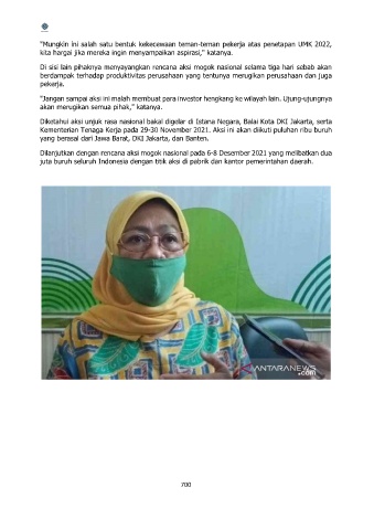 "Mungkin ini salah satu bentuk kekecewaan teman-teman pekerja atas penetapan UMK 2022,