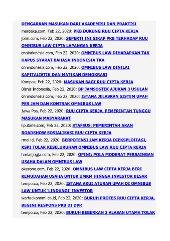Kompas, Feb 22, 2020: MASUKAN BAGI RUU CIPTA KERJA