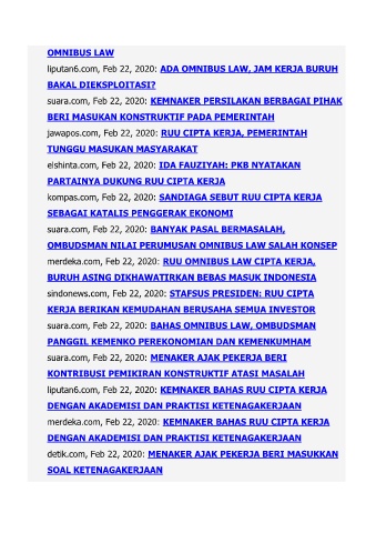 merdeka.com, Feb 22, 2020: RUU OMNIBUS LAW CIPTA KERJA,