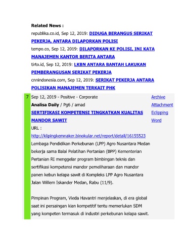 cnnindonesia.com, Sep 12, 2019: SERIKAT PEKERJA ANTARA