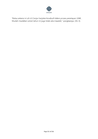 "Kalau selama ini sih di Cianjur berjalan kondusif dalam proses penetapan UMK. Mudah-mudahan untuk tahun ini juga tidak ada masalah," pungkasnya. (OL-3). Page 322 of 328.