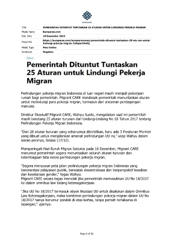 rumah bagi pemerintah. Migrant CARE mendesak pemerintah menuntaskan aturan