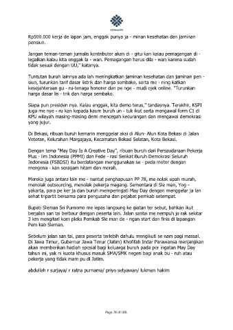 menolak outsourcing, menolak pekerja magang. Sementara di Sle man, Yog -
