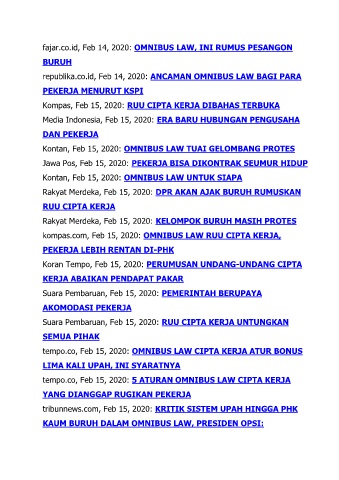 kompas.com, Feb 15, 2020: OMNIBUS LAW RUU CIPTA KERJA,