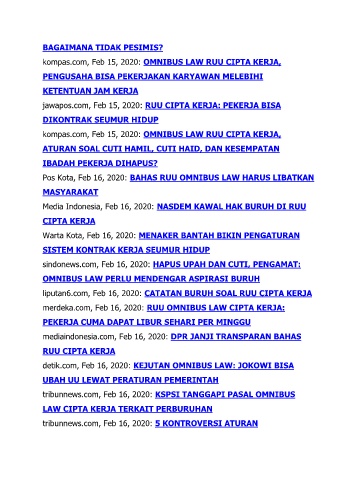 kompas.com, Feb 15, 2020: OMNIBUS LAW RUU CIPTA KERJA,