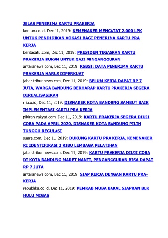jabar.tribunnews.com, Dec 11, 2019: KARTU PRAKERJA DIUJI COBA