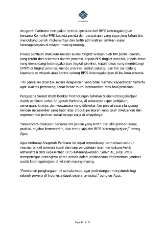 Anugerah Paritrana merupakan bentuk apresiasi dari BPJS Ketenagakerjaan