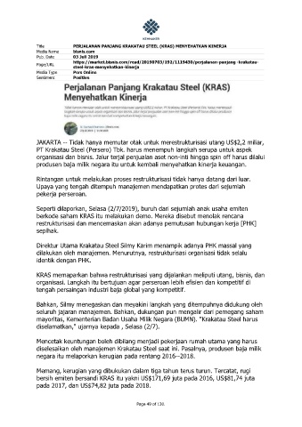 Title PERJALANAN PANJANG KRAKATAU STEEL (KRAS) MENYEHATKAN KINERJA