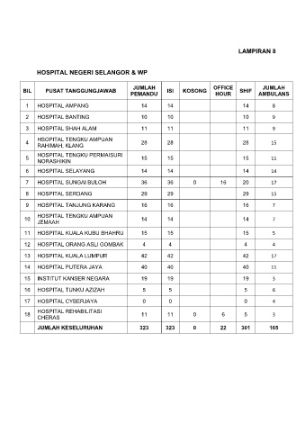 9 HOSPITAL TANJUNG KARANG 16 16 16 7