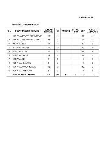 9 HOSPITAL KUALA NERANG 12 12 12 6