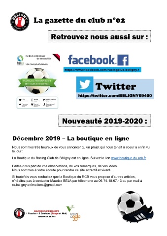 La Boutique du Racing Club de Béligny est en ligne. Suivez le lien www.boutique-du-rcb.fr