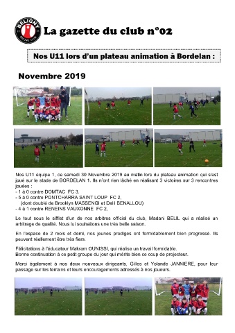 Nos U11 équipe 1, ce samedi 30 Novembre 2019 au matin lors du plateau animation qui s'est
