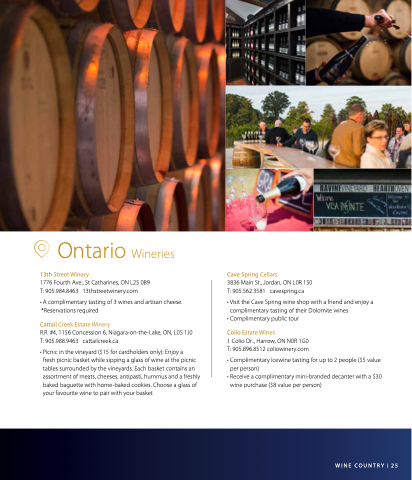 3836 Main St Jordan ON L0R 1S0 T: 905 562 3581 cavespring ca ca • Visit the Cave Spring wine shop with a a a a friend and enjoy a a a a complimentary tasting of their Dolomite wines • Complimentary public tour
