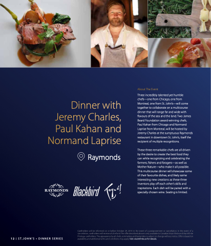 from Montreal will be hosted by Jeremy Charles at the sumptuous Raymonds restaurant in downtown St John’s itself the recipient of multiple recognitions These three remarkable chefs are all driven by the the the desire to create the the the best food they can while recognizing and