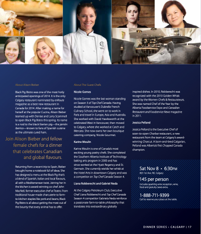 was Alberta’s first Chopped Canada champion Sat Nov 8 • 6:30PM 825 1st Ave NE Calgary $145 per per person