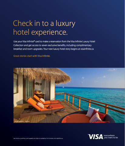 Use your Visa InfiniteĀ® card to make a reservation from the Visa Infinite Luxury Hotel Collection and get access to seven exclusive benefits, including complimentary breakfast and room upgrades. Your next luxury hotel story begins at visainfinite.ca