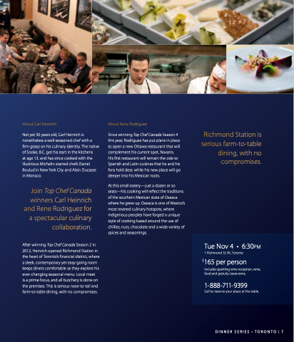 Call to reserve your place at the table DINNER SERIES • TORONTO |