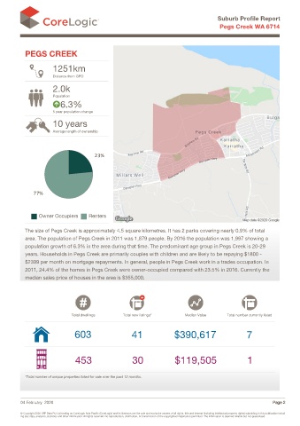 years. Households in Pegs Creek are primarily couples with children and are likely to be repaying $1800 -