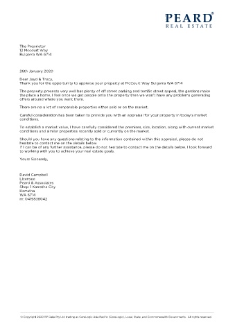 Thank you for the opportunity to appraise your property at McCourt Way Bulgarra WA 6714