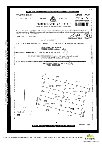 LANDGATE COPY OF ORIGINAL NOT TO SCALE   26/02/2020 04:15 PM   Request number: 60365445