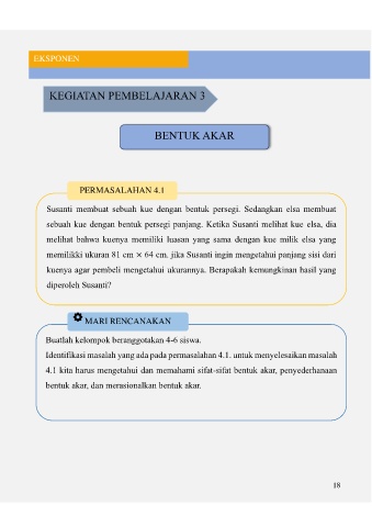 Susanti membuat sebuah kue dengan bentuk persegi. Sedangkan elsa membuat