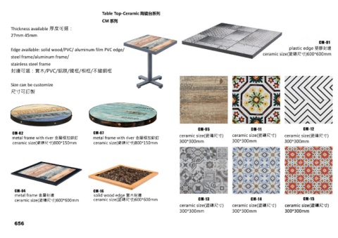 Thickness available 厚度可選: 27mm 45mm Edge available: solid wood/PVC/ aluminum film PVC edge/ steel frame/aluminum frame/ stainless steel frame 封邊可選:實木/PVC/鋁膜/鐵框/相框/不鏽鋼框 Size can be customize 尺寸可訂製 656