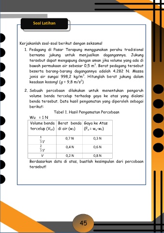 bawah permukaan air sebesar 0,5 m . Berat pedagang tersebut