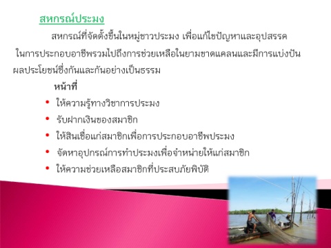 • ใหสินเชือแกสมาชิกเพือการประกอบอาชีพประมง