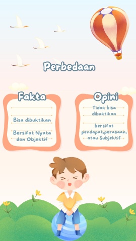 Perbedaan P e r b e d a a n Fakta O p n i F a k t a Opini i Tidak bisa dibuktikan Bisa dibuktikan bersifat Bersifat Nyata pendapat,perasaan, dan Objektif atau Subjektif