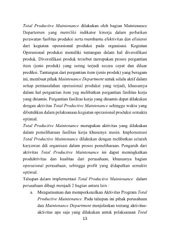 Total Productive Maintenance dilakukan oleh bagian Maintenance