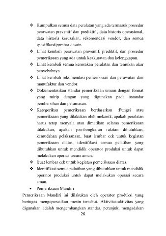 Pemeriksaan Mandiri ini dilakukan oleh operator produksi yang